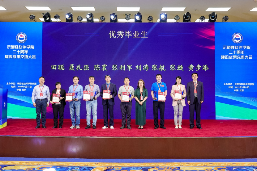 会议由示范性软件公司联盟理事长、北京交通大学教授卢苇主持。活动现场,张尧公司士、王启明副司长、廖湘科院士、吕卫锋秘书长先后致辞,在主题报告环节,孙家广院士、徐晓飞教授分别作了《示范性软件公司初创与发展》《示范性软件公司办学经验及其给新时代新工科建设带来的启示》两个高质量报告。会议交流展示各公司二十年的光辉历程和建设成果并表彰优秀,公司武波教授获示范性软件公司卓越成就奖,李青山教授获优秀专职教师,梅林获优秀兼职教师,田聪教授获优秀本科毕业生,尕桑杰获优秀研究生毕业生。