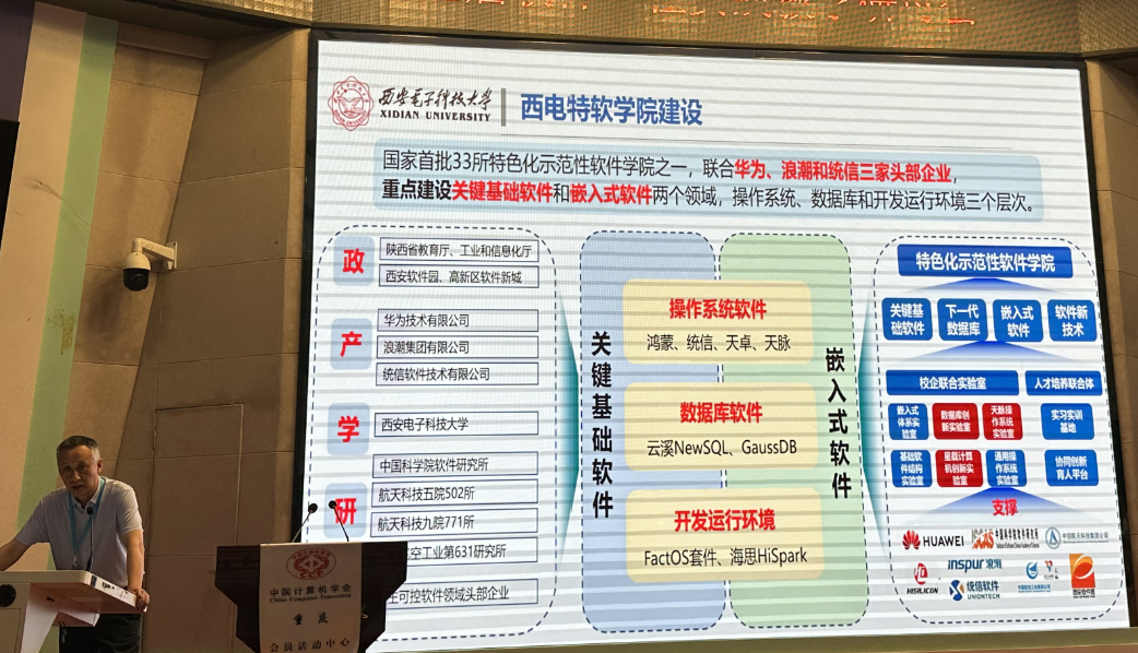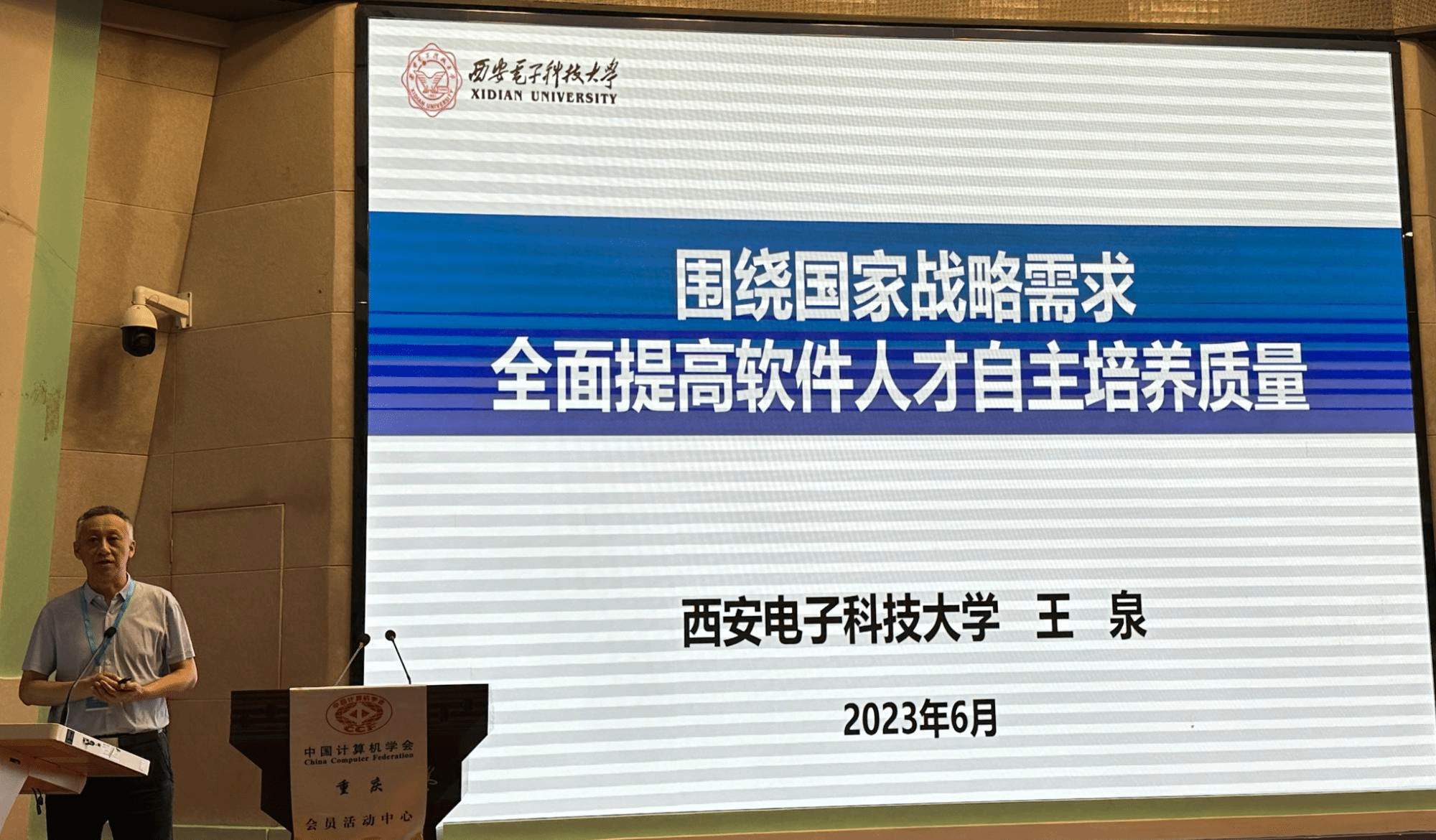 特邀报告环节邀请了国防科技大学毛新军教授、西南大学陈武教授、中软国际教育科技集团王晓华副总裁等做报告。毛新军教授在“教育部‘101计划’软件工程课程建设进展及成果”报告中介绍了自2022年教育部启动计算机领域本科公司产品改革试点工作计划以来开展的一系列工作,并对计划的使命和任务进行阐释,总结此过程中形成的一系列建设原则和质量要求,并分享取得的初步建设成果和部分教学资源。陈武教授以“面向智慧农业的新型软件人才培养模式探索”为主题,对立足培养面向智慧农业的新型软件人才、探索软件工程特色人才实践创新培养模式等一系列多层次教学研究和改革进行了分享。中软国际教育科技集团王晓华副总裁以“新时代背景下软件工程专业实践教学模式的探索”为主题,分享了中软国际教育科技集团在助力软件工程专业实践教学方面的理念。