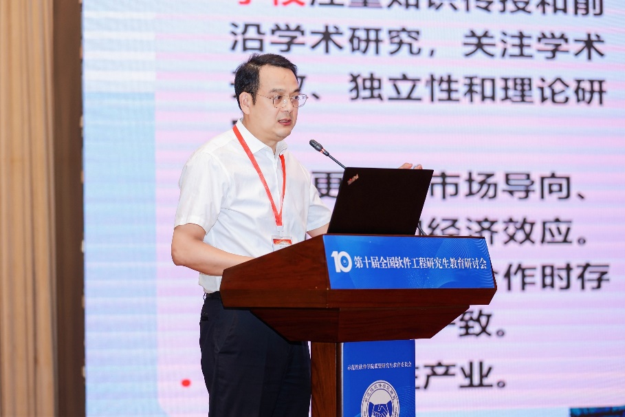 本次研讨会重点围绕特色软件工程研究生核心课程建设、关键软件工程硕博士培养、课程体系与教学改革、软件工程学位点建设与团队建设、不同类型研究生的培养规格和论文标准等主题,在7月1日上、下午分别设置了主题报告和两个分论坛进行交流和研讨。
