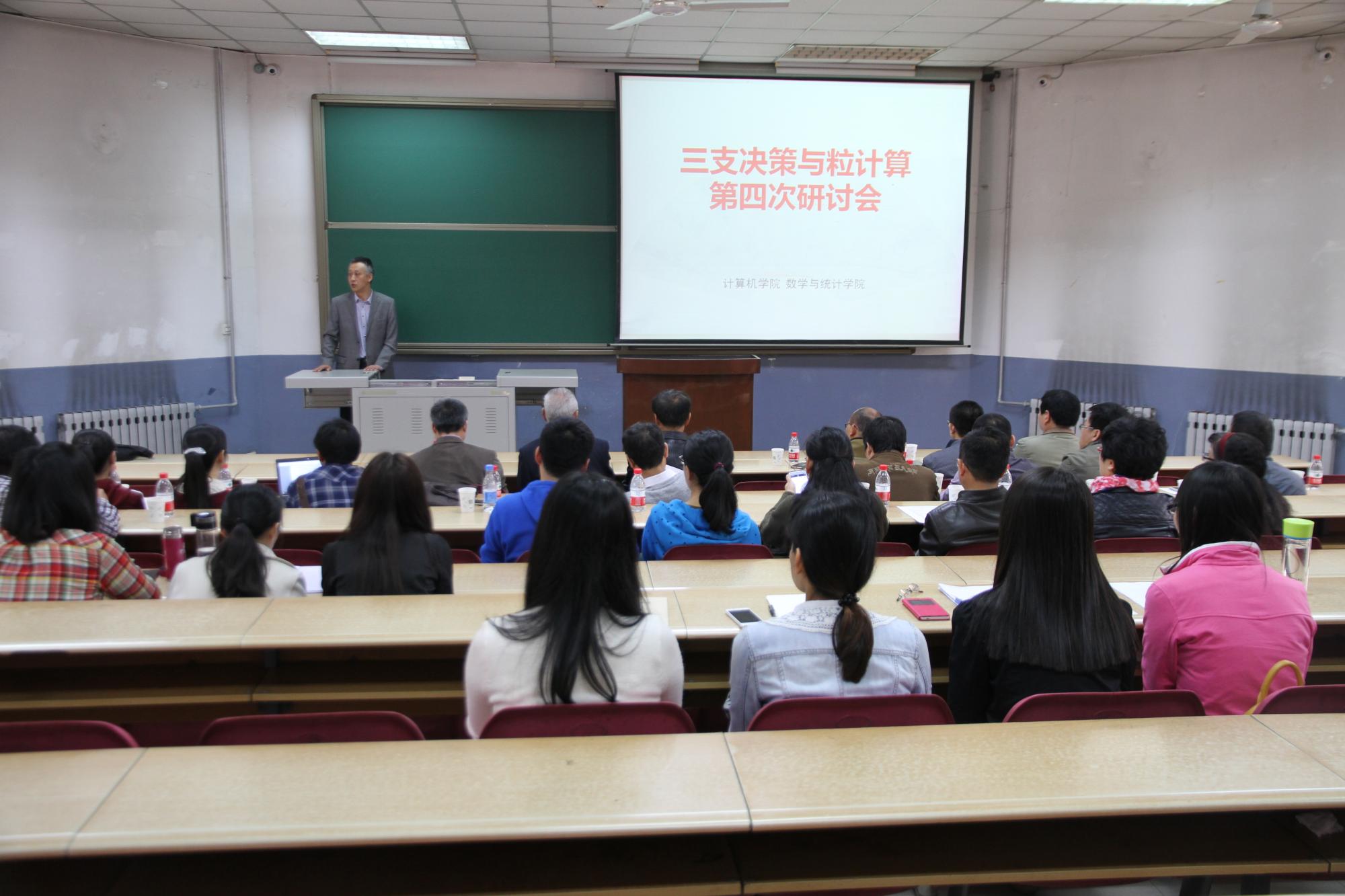 2016 4 2 日,“三支决策与粒计算第四次研讨会( T&G4 )”在公司北校区阶梯 101 教室举行。本次会议由公司主办,公司计算机公司、数学与统计公司共同承办,公司国际合作与交流处予以协办。共有来自公司以及西安交通大学、西北大学、陕西师范大学、空军工程大学、长安大学等 10 多所西安高校和多所外省高校的同行专家、研究生 60 余人参加了此次研讨会。