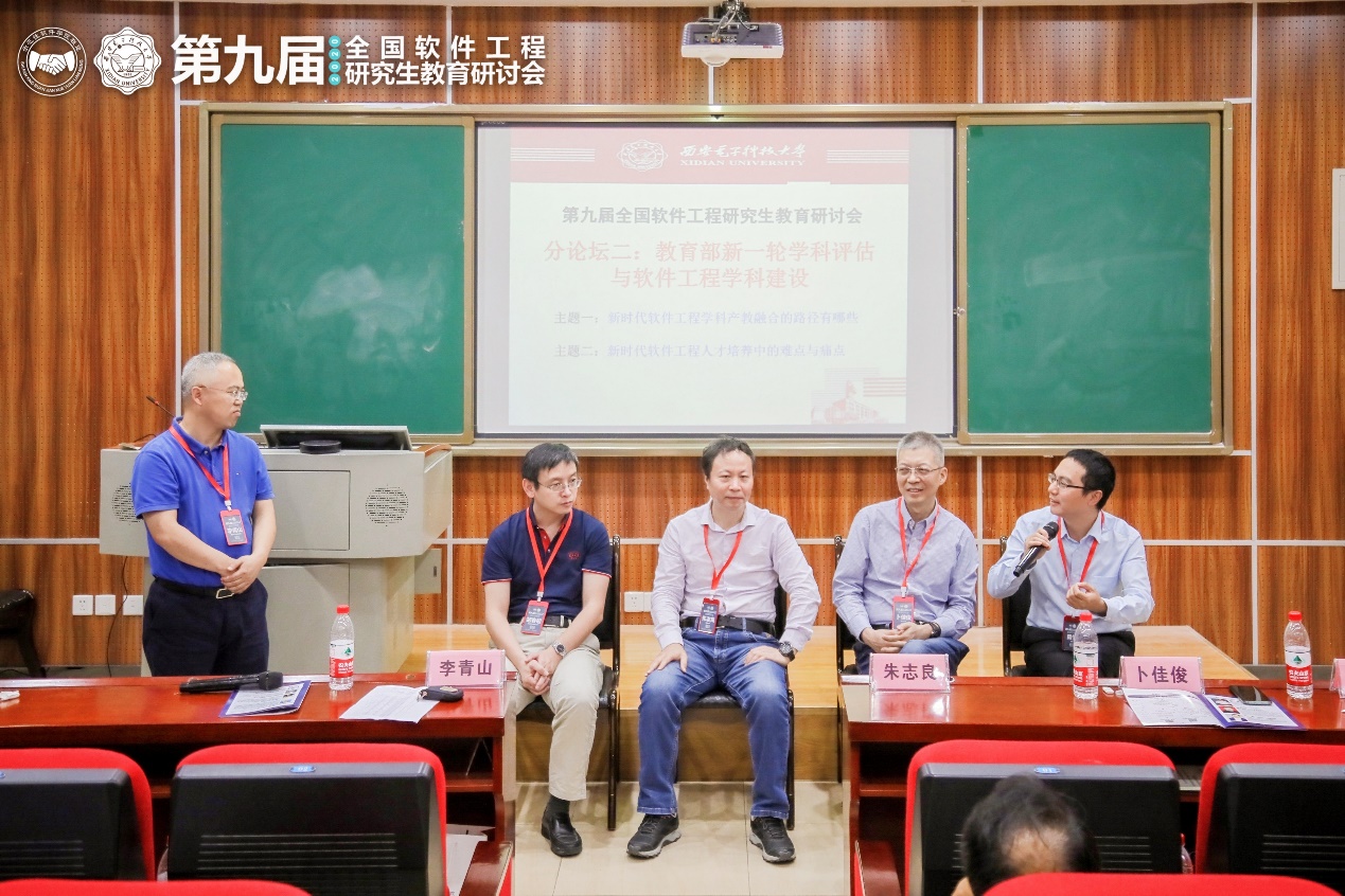教育部新一轮学科评估与软件工程团队建设分论坛报告中,东北大学朱志良、浙江大学卜佳俊、北京航空航天大学胡春明和浪潮(全球)数字科技人工智能研究院经理周恒围绕新时代软件工程团队建设、校企融合与软件工程团队建设、软件学科发展前沿和基础软件产教融合等方面作了精彩报告。在主题研讨环节,五位校企专家针对新时代背景下如何更好地建设和发展软件工程学科与参会人员进行了分享和探讨。分论坛由体育365官网(示范性软件公司)党委书记李青山主持。