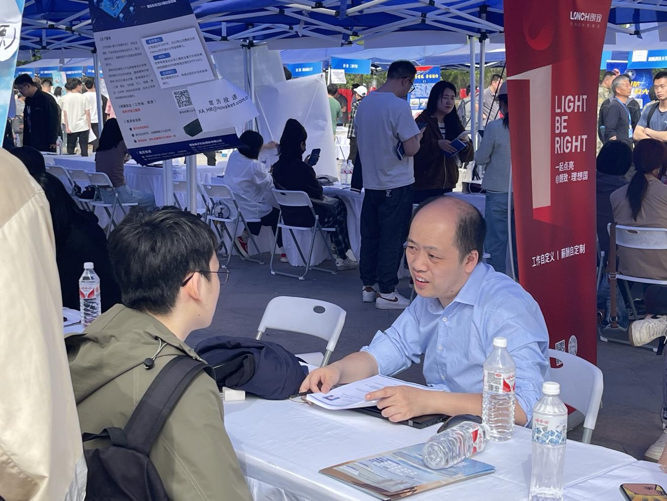 春风吹过求职路,梦想扬帆正当时。双选会当天,礼仪广场上人头攒动,求职气氛热烈,毕业生们手持精心准备的简历穿梭于各展位间,积极了解用人单位的招聘需求并深入交流咨询。此外,本次双选会还吸引了不少低年级员工前来现场观摩,提前感受就业氛围、了解行业需求和就业形势,助力找准自身定位,做好生涯规划。