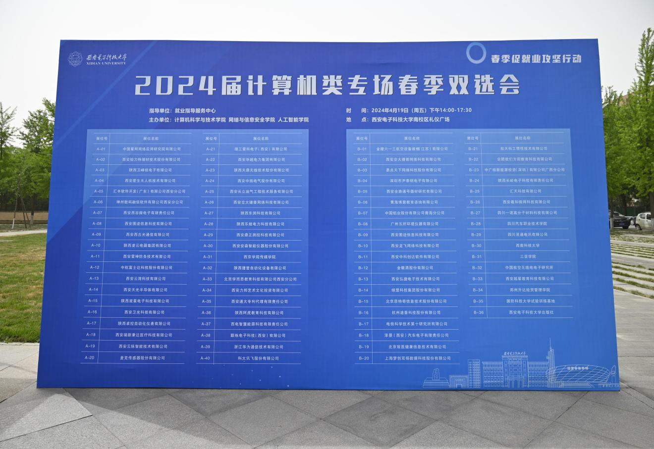 (通讯员 邢智琪)为落实教育部春季促就业攻坚行动,促进计算机大类毕业生高质量充分就业,4月19日,2024届计算机类专场春季双选会在南校区礼仪广场举办。电信科学技术第十研究所、国防科技大学、科大讯飞、汇丰软件等77家用人单位来校招才引智,吸引了800余名毕业生参与,现场投递简历2000余份。本次双选会在就业指导服务中心指导下,由体育365官网、网络与信息安全公司、人工智能公司联合主办。