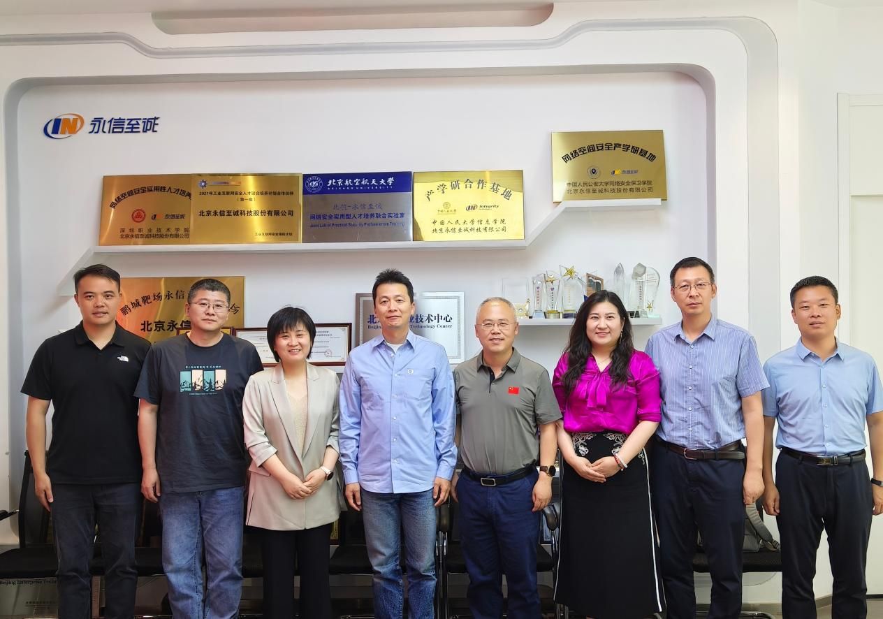 随后,调研组一行前往永信至诚科技集团股份有限公司总部,与公司董事长蔡晶晶、首席技术官张凯等座谈交流。永信至诚首席技术官张凯首先从公司概况、核心业务能力、重点产品与服务等方面对公司进行了介绍。永信至诚董事长蔡晶晶表示,公司聚焦网络与数据安全创新,首创数字风洞产品体系和高仿真网络靶场平台,建立了多场景人才培养体系,希望能与公司建立常态化合作机制,为数字中国建设提供专有人才支撑。李青山、张美茹分别介绍公司情况并一致认为,两个公司将不断发挥学科优势加强开拓融合,以工程应用为牵引,深化产学研合作,增强校企协同育人能力,支撑计算机与网络安全人才培养,增进员工对计算机与网络安全行业头部企业的了解,引导员工主动服务国家战略。