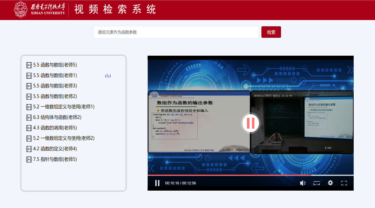 基于知识点的课堂视频片段检索系统界面图